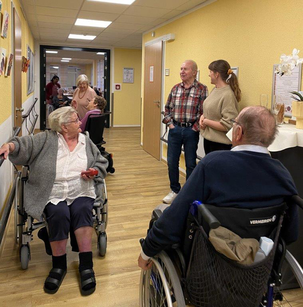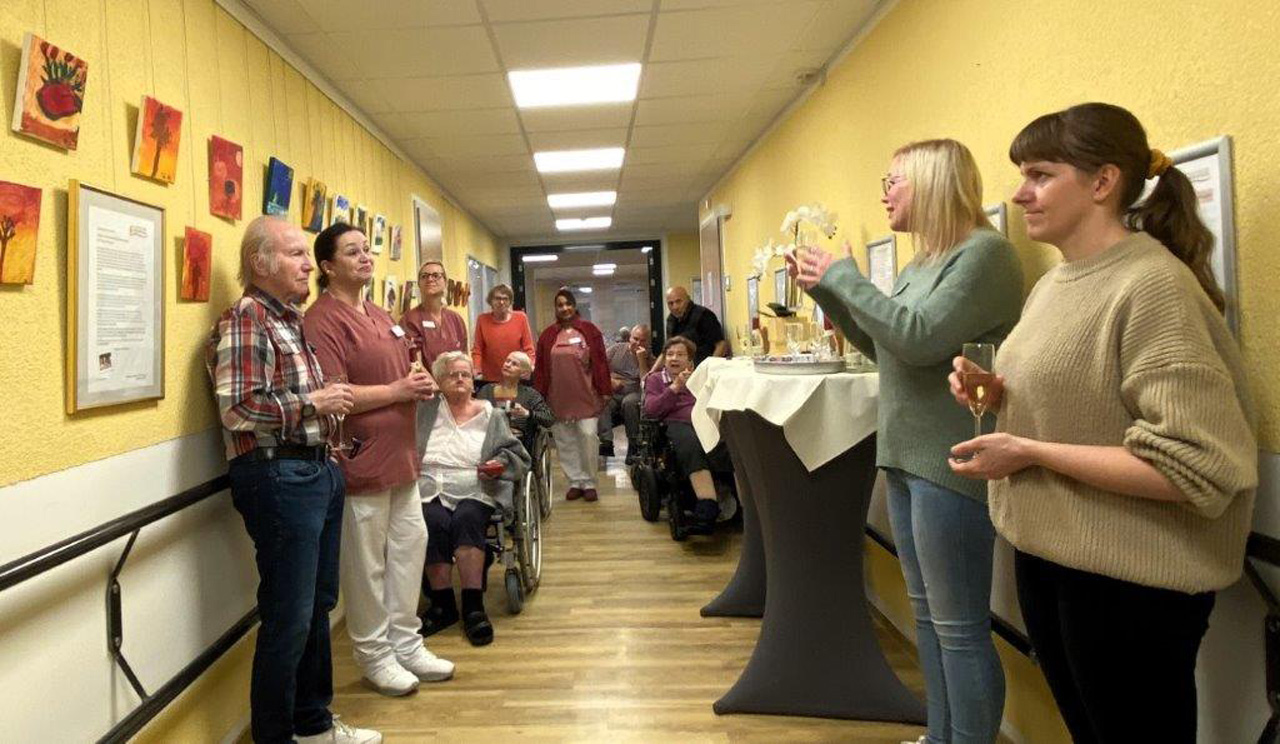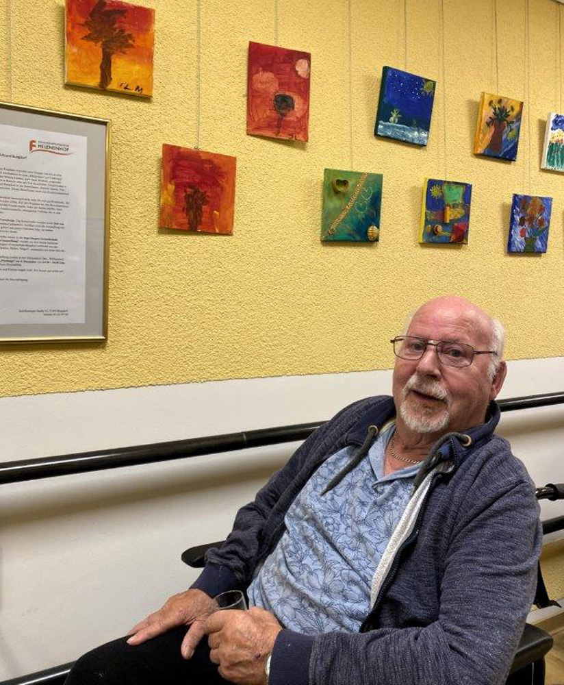 Die Zusammenarbeit im Projekt "Kunst kennt kein Alter" mit dem Kinderschutzbund Burgdorf ist bereichernd. Bereichernd für alle teilnehmenden Bewohnerinnen und Bewohner, für Frau Tanja Misernjuk vom Kinderschutzbund sowie für uns alle im Helenenhof. Der erste Abschnitt unseres gemeinsamen Projektes mündete am 9. Oktober 2025 im gemütlichen Zusammensein bei einer Vernissage. Mit einem Gläschen Sekt wurde auf diesen, erfolgreichen Projektabschnitt und die Künstler angestoßen.